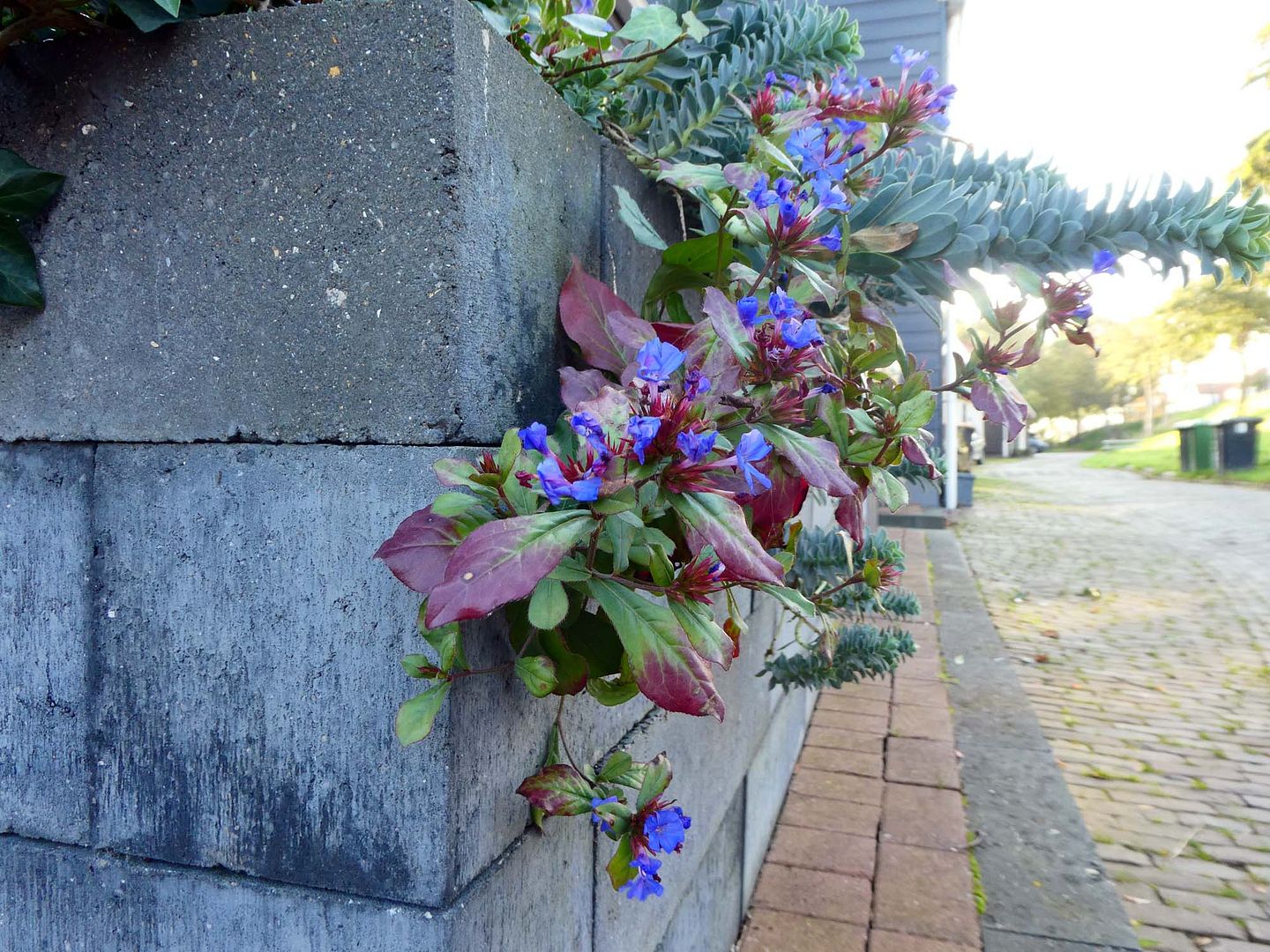Achter bloeit de Tibouchina nog prachtig, daar geniet ik elke dag van, van het hele tuintje trouwens wel, er bloeien nog wat geraniums gekleurde blaadjes, alles bij elkaar en ik kan er af en toe lekker even in rommelen, of de was te drogen hangen.