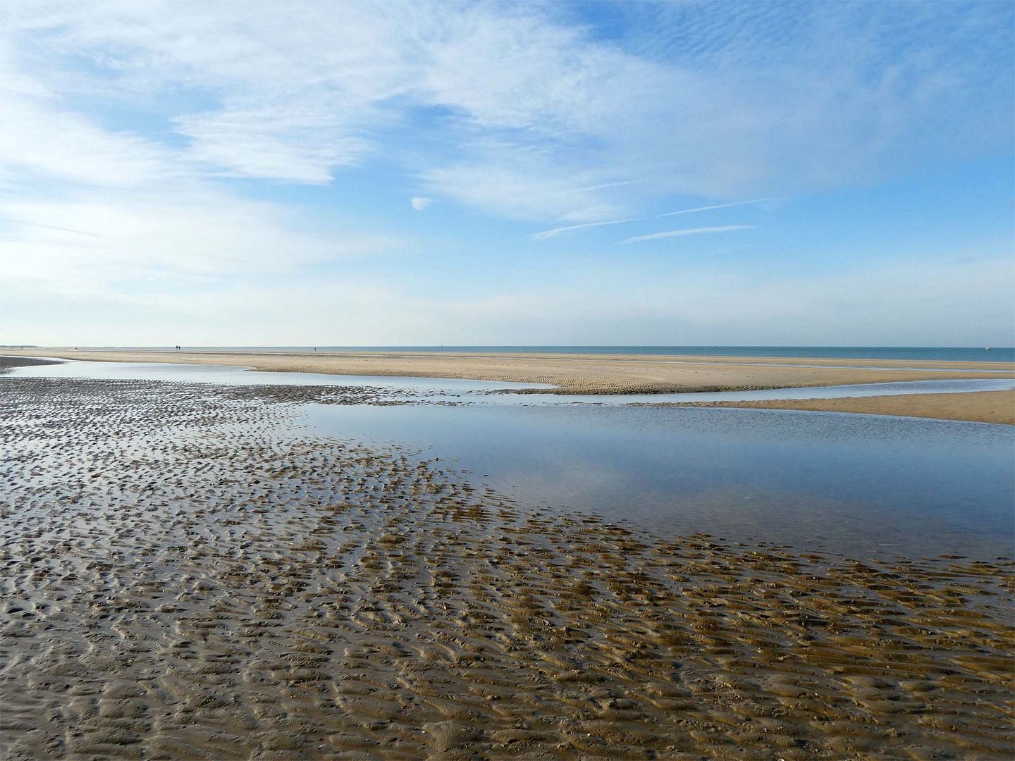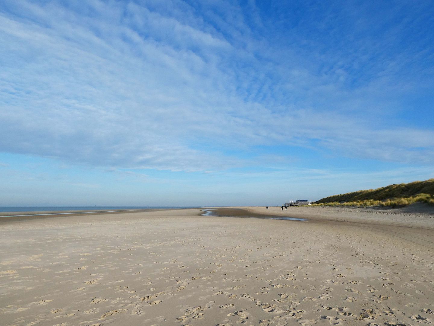Foto's van het strand als het zo rustig is vind ik altijd heel bijzonder. het lijkt of de lucht zich vormt naar de scheiding tussen land en zee en dat zal ook wel zo zijn, zodat je vaak bijzondere wolkenlijnen krijgt.