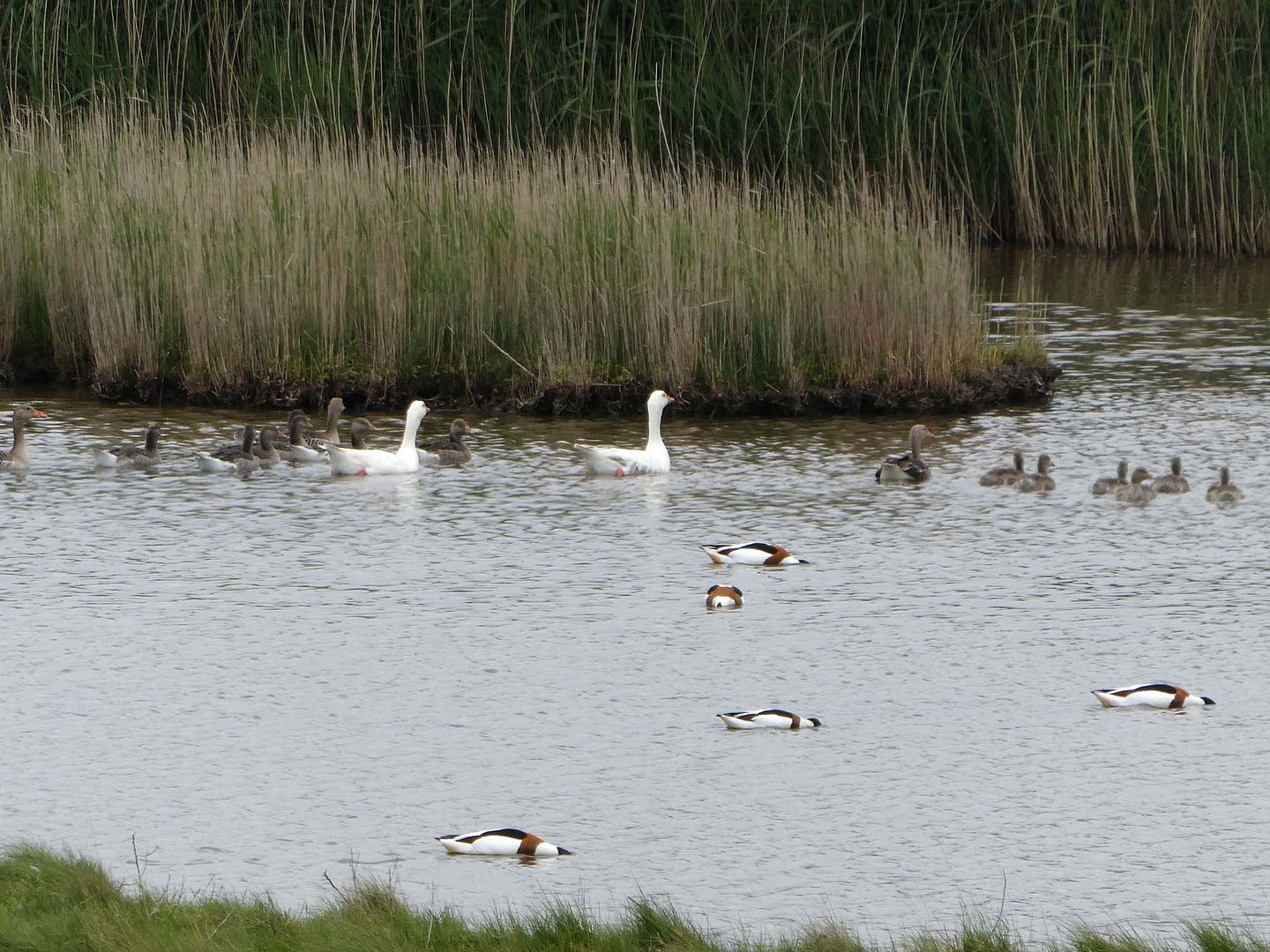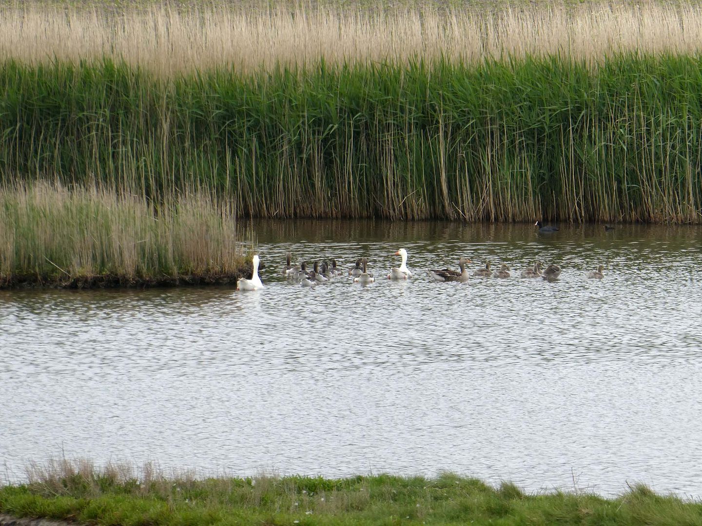 Toen zag ik ook dat er meer kopjes waren dan alleen die witte twee. Ze waren blijkbaar geallarmeerd door iets anders want ik was ver genoeg weg.