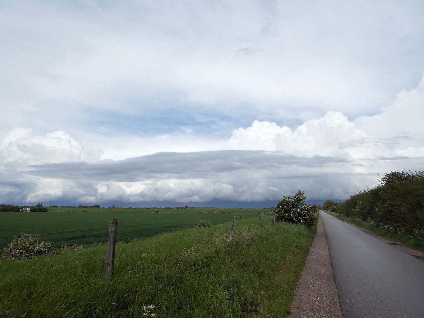 Ik ging maar eens een rondje doen en zag wat een indrukwekkende luchten er waren en ik reed nog maar even door de andere kant op, daar scheen de zon tenminste.