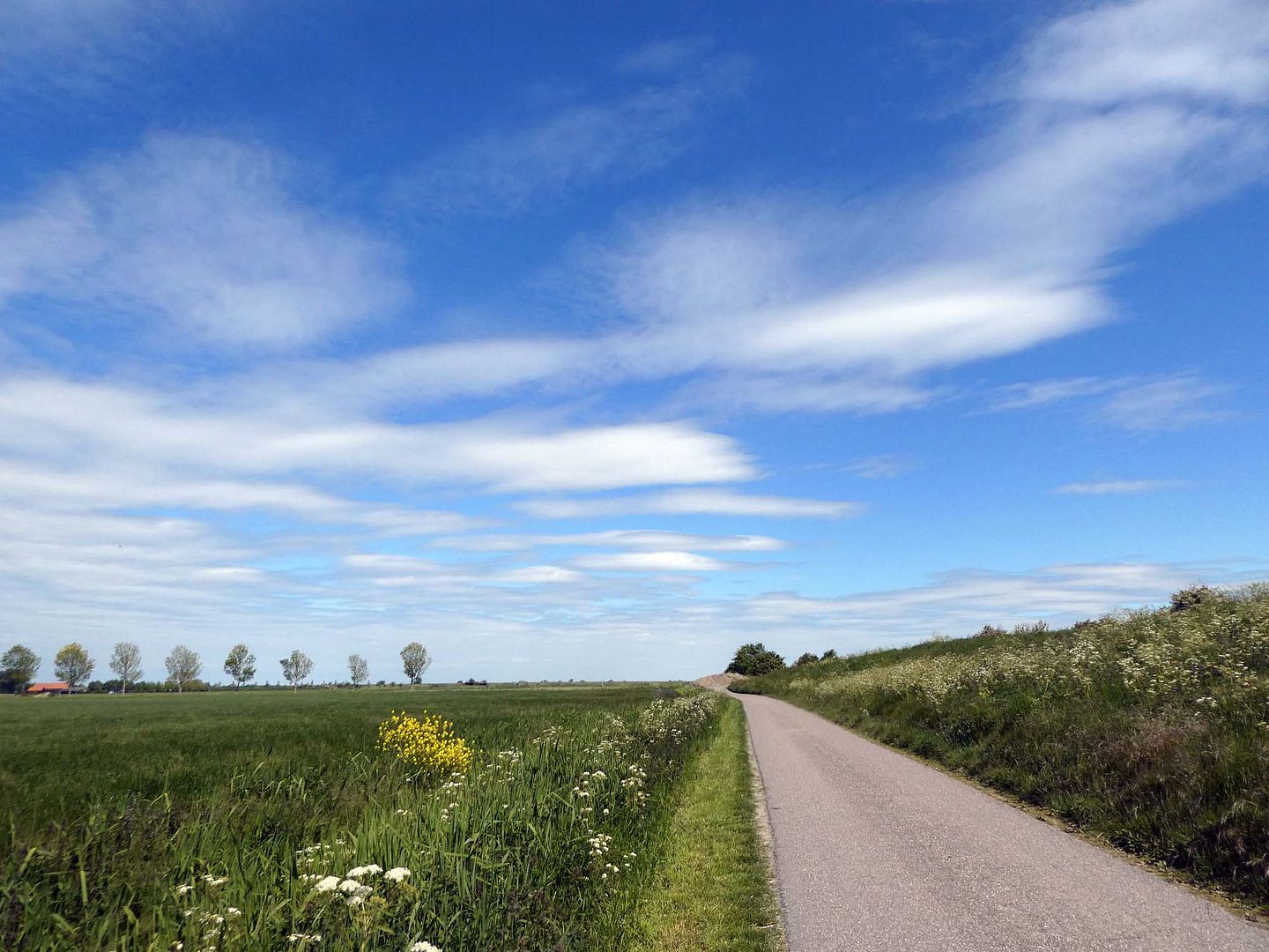 Onderweg naar huis reed ik nog even door de polder voor een fotomomentje met de wolkjes en de bloemen.