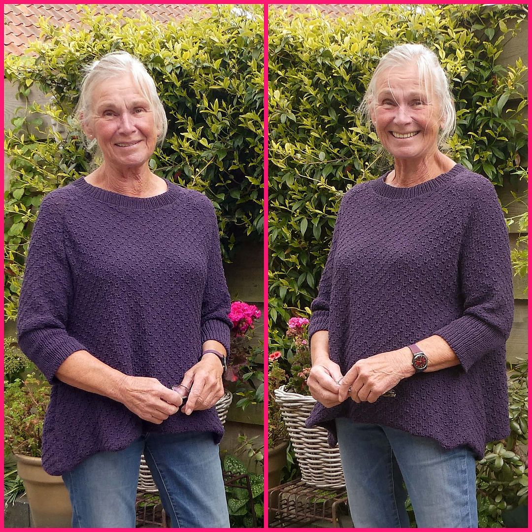 Gisteren vertelde ik al dat de trui eindelijk klaar was, maar het fotomoment was er nog niet van gekomen. Vandaag dan maar, al had ik beter eerst mijn haar een beetje kunnen fatsoeneren. Maar goed dat zat dus zo, veel wind vandaag.