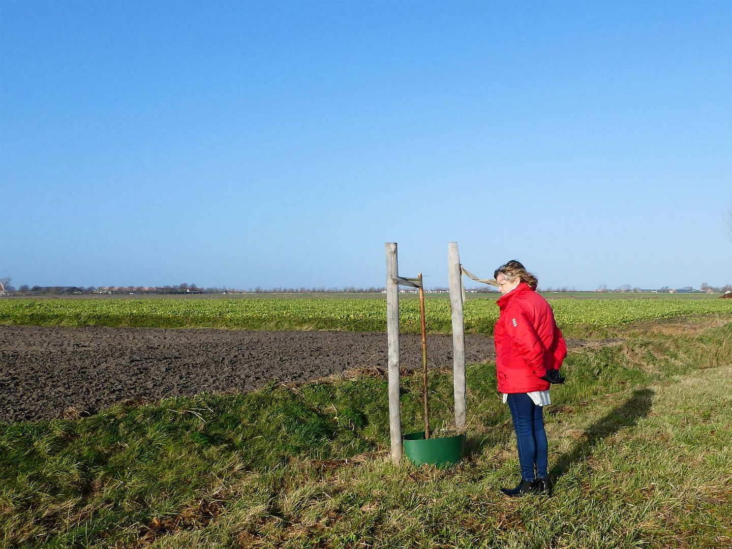 De groene kliko was aan de beurt vanmorgen, dus het was best een goed plan nog eens even wat blaren te verzamelen na de wind. De nu nog kleine bomen op de dijk zijn aan het uitvallen, dat wordt wat als ze later groot zijn. Ik kijk ernaar uit!