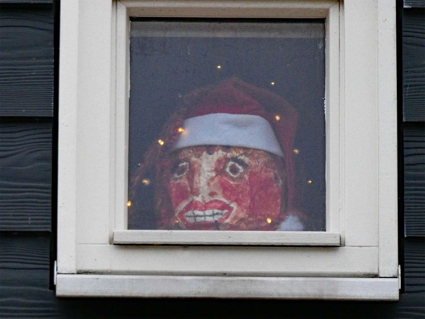 De kerstman heb ik samen met zijn ballen en wat lampjes opgesloten op zolder.