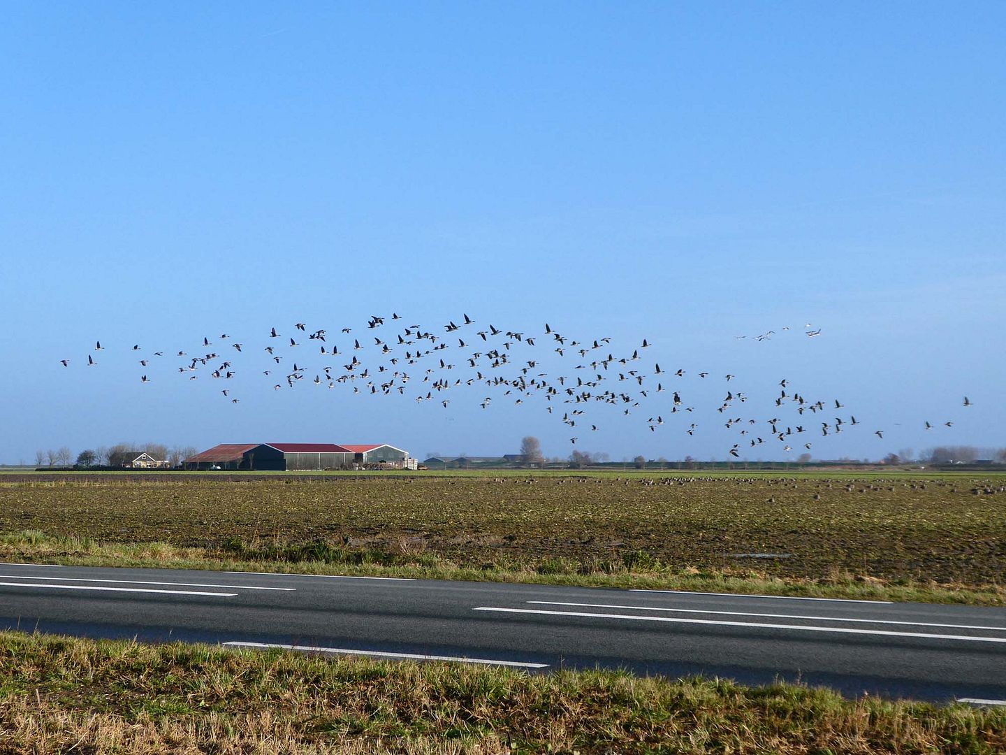 Vanmorgen en vanmiddag lekker gelopen, de boeren rauzen weer door de polder met peeën, suukerpeeën, winterpeeën, alles moet eruit voordat de hemel weer openbreekt.