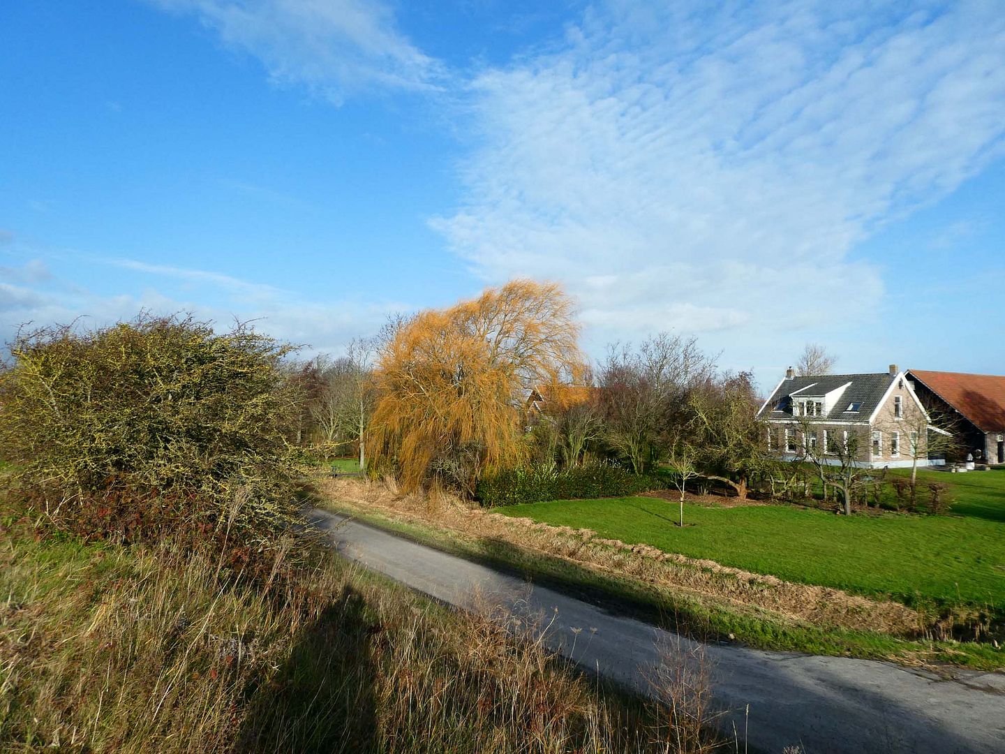 Vanmiddag klaarde het op. Ina is er nog en we deden een rondje Schraphage. 'Waarom heet die boerderij zo?' Dat wist ik niet, misschien ooit een polder met die naam of een boer met een krappe heg, veel huizen hebben namen daarvan weet ik ook niet waarom ze zo heten. Oude boerderijen heten vaak naar de vroegere polder waar ze in staan/stonden.