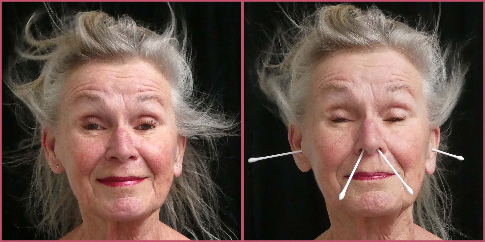 De opdracht was om een paar humoristische portret foto's te maken. Modellen had ik niet bij de hand dus ik ging maar met de zelfontspanner aan de gang. Zonder stokjes vond ik het niet grappig genoeg, dus vandaar.