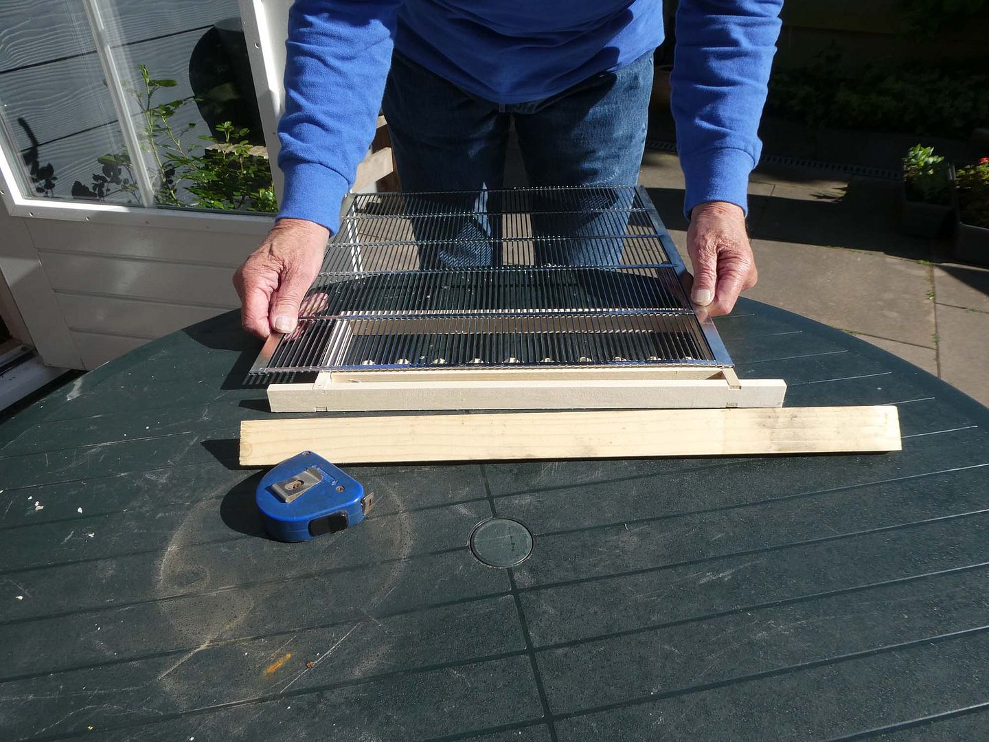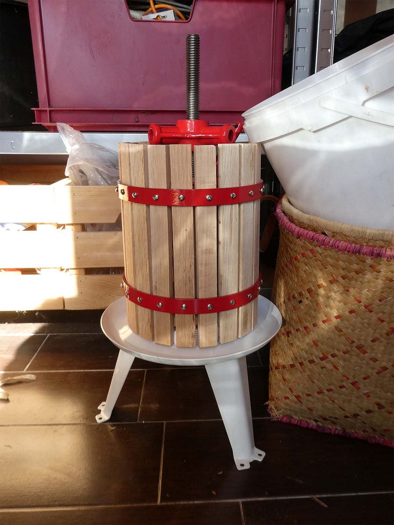 De pers werd bezorgd als een bouwpakket dus Joop was ook weer even zoet. We gaan nog niet persen, maar eerst nog wat meer honingraat verzamelen, zodat er wat meer is anders blijf je bezig.