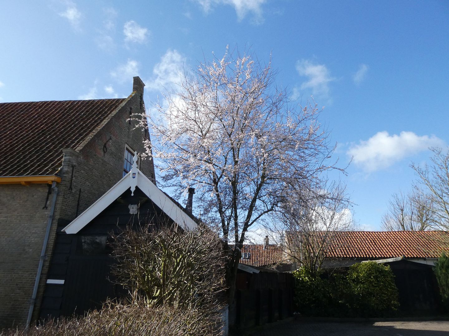 Een stukje verderop een lege parkeerplaats met een mooie bloeiende boom, ook al leuk.