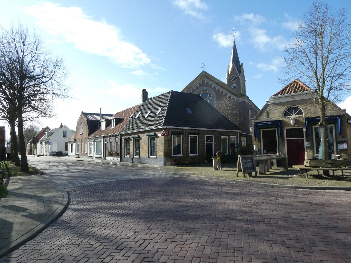 Een fotomomentje in de Zuidweg, geen enkele auto voor de huizen en terrasweer is het nog niet.