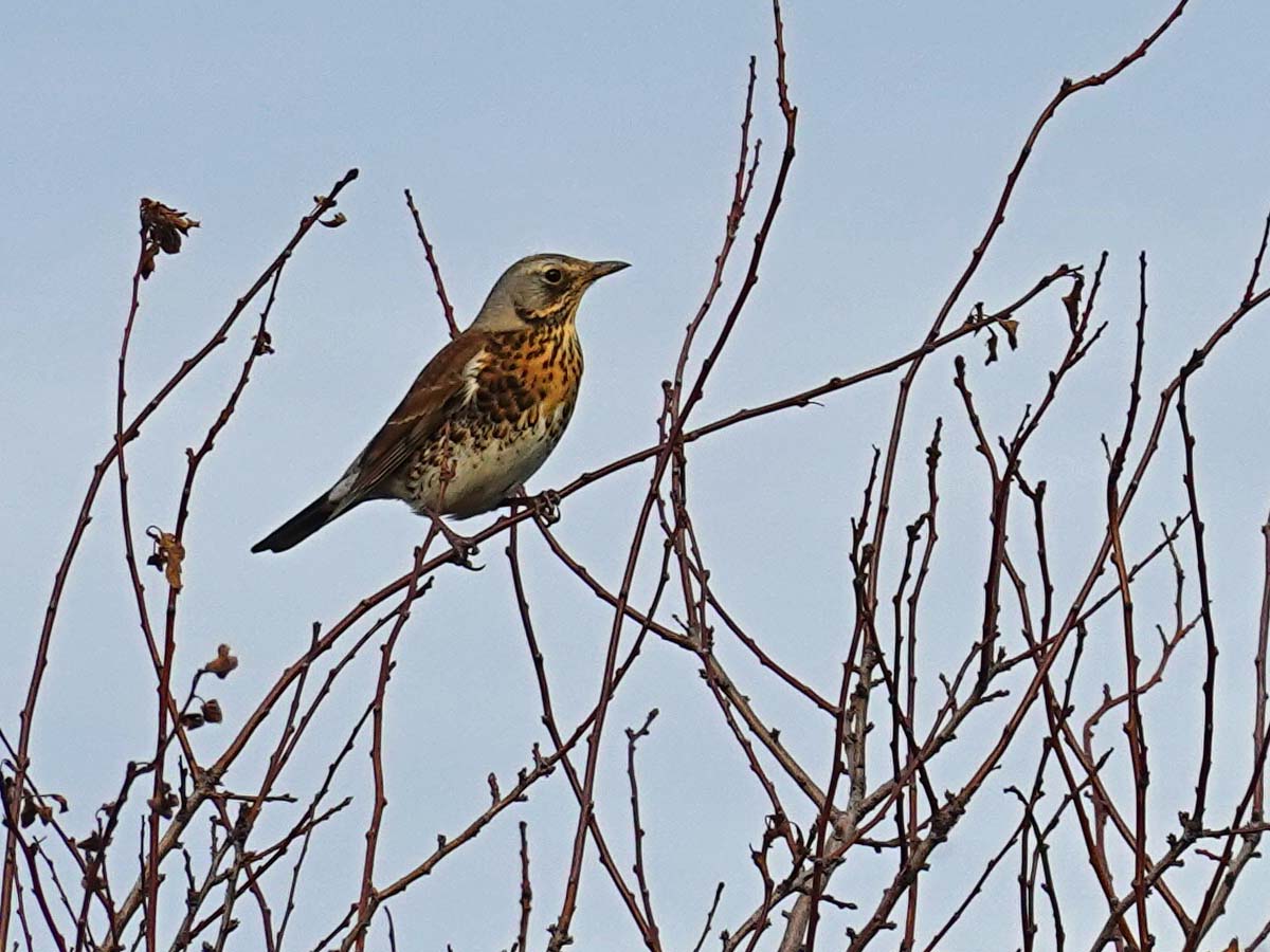 Daarna was het nog steeds heerlijk ik besloot nog maar een rondje te doen en zag een boel kramsvogels, alleen deze ene wilde op de foto. Het was nog heerlijk en zo kwam ik ook weer eens aan wat kilometers vandaag.
