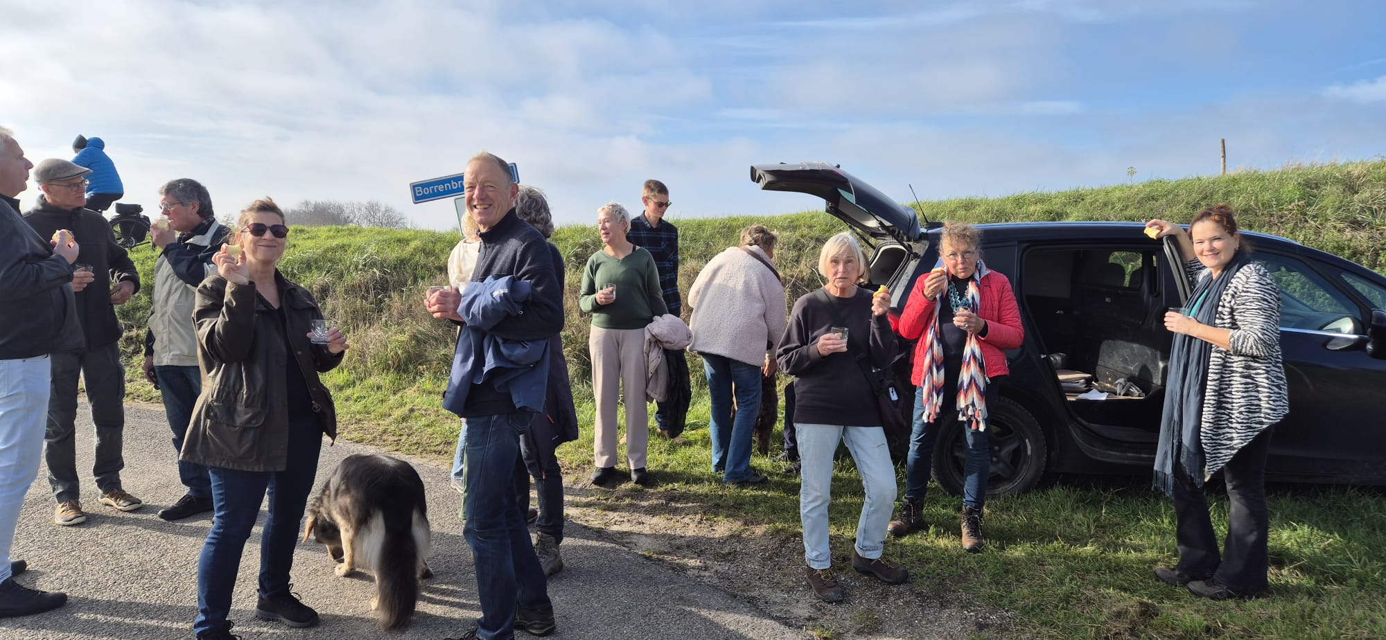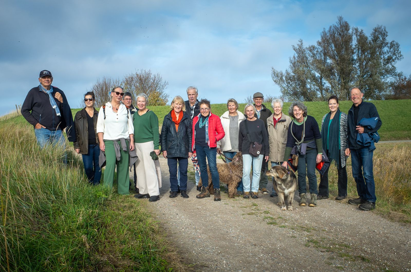 Heerlijk wandelweer vanmorgen en het kon nog makkelijk zonder jas, voor mij tenminste wel en gezellig een paar homdjes erbij.