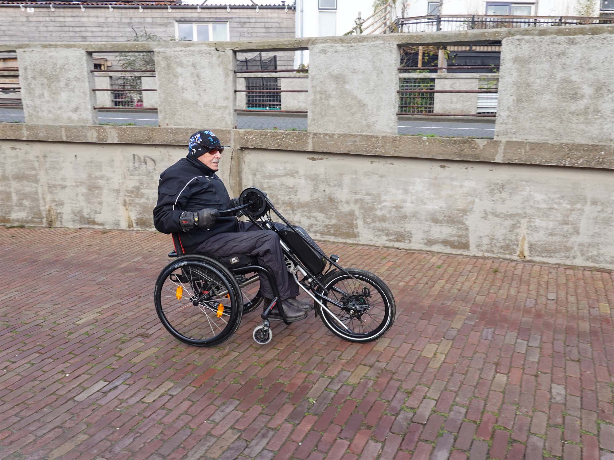 De kracht in zijn handen wordt minder, veel pijn ook en wat vaker de accu erbij, maar die zit er natuurlijk niet voor niets op. De rondjes worden wel wat korter vanwege de kou en ook minder kracht, maar het is goed om naar buiten te gaan. De winter is er niet bevorderlijk voor als je zoiets hebt.