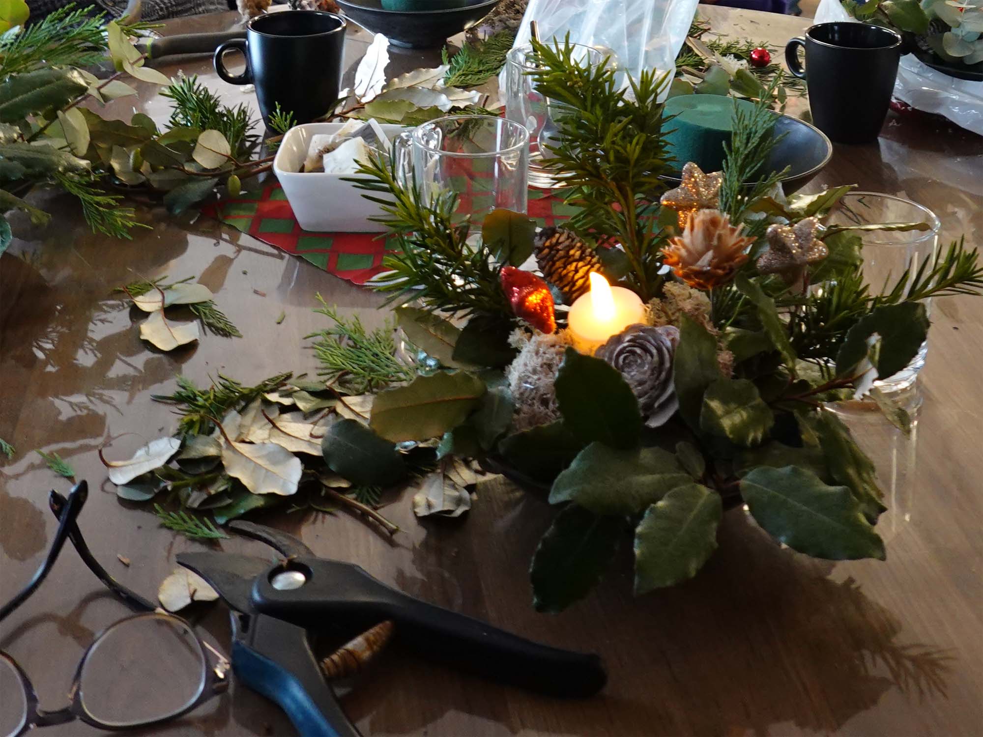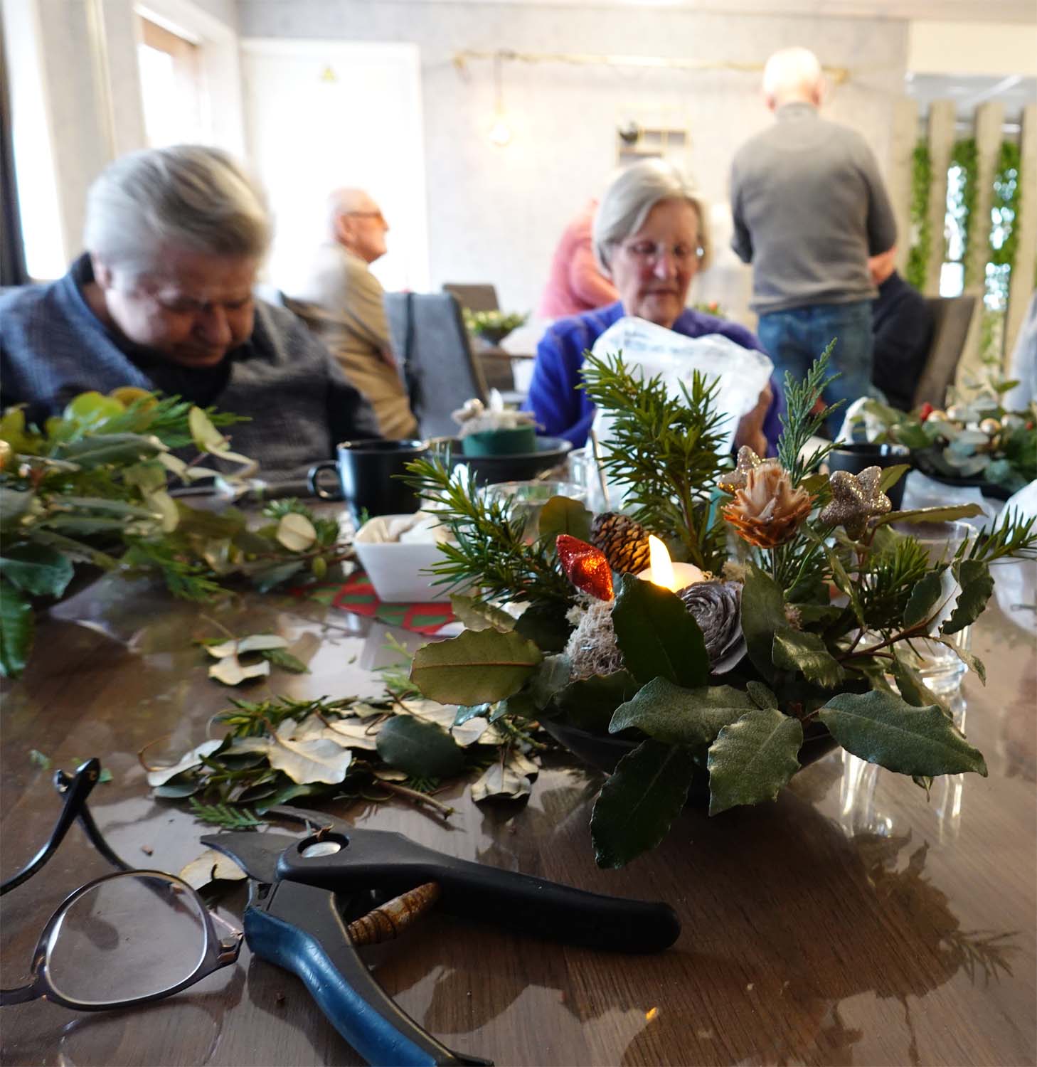 We waren vanmiddag bij het oogcafé, waar we een soort kerst samenzijn hadden. Soep met broodjes, een drankje met een hapje en tussendoor maakten we met z'n allen een kerststukje, tenminste degenen die nog iets zagen, want er zitten er bij die zien dus bijna niets meer en die kunnen dat alleen echt niet.