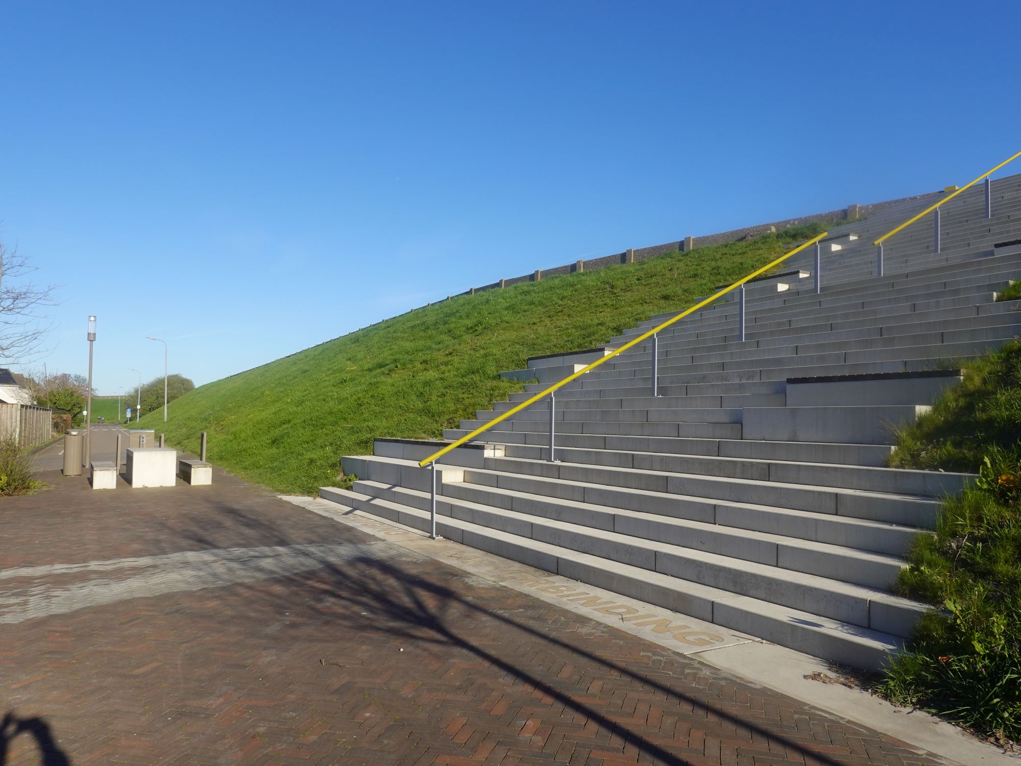 Wat ik wel mooi vind is dat ze bovenop de dijk een plateautje hebben gemaakt waarbij een stuk van het Muralt muurtje naar achter is geplaatst. Mooi gedaan.