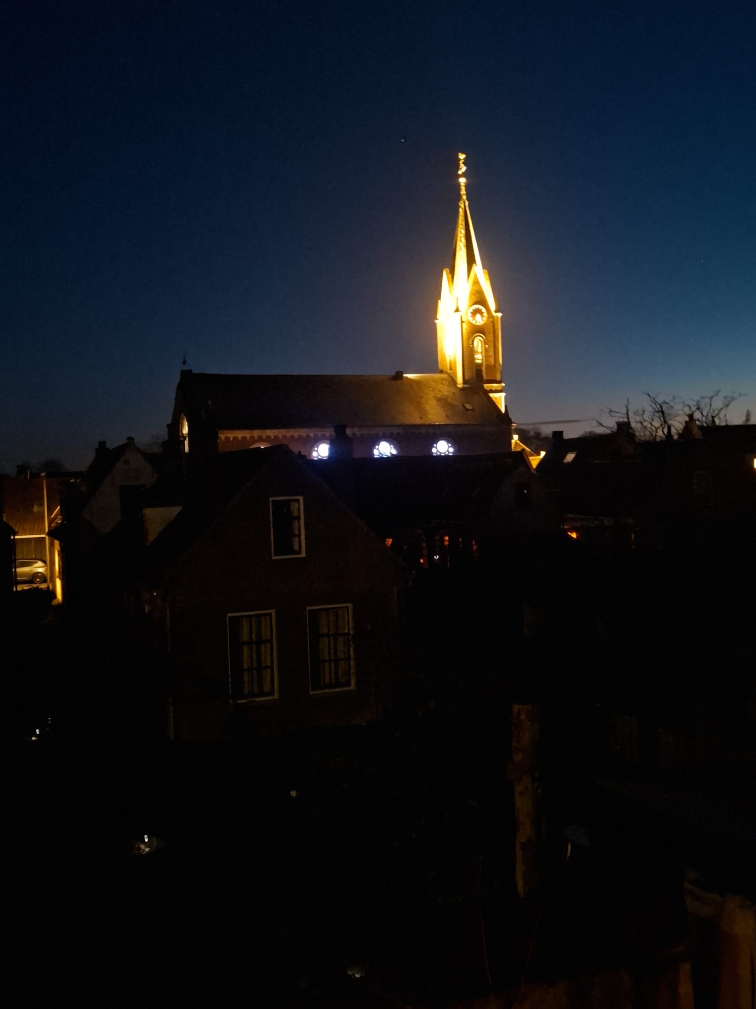 Dat was wel even schrikken gisteravond onder het koffiedrinken! Het leek wel een pistoolschot, of een ontploffing, maar we zagen niets. En toen zag ik het plots, of tenminste ik zag nog niets, maar begreep wat het was... Joop zijn buitenband was ontploft...