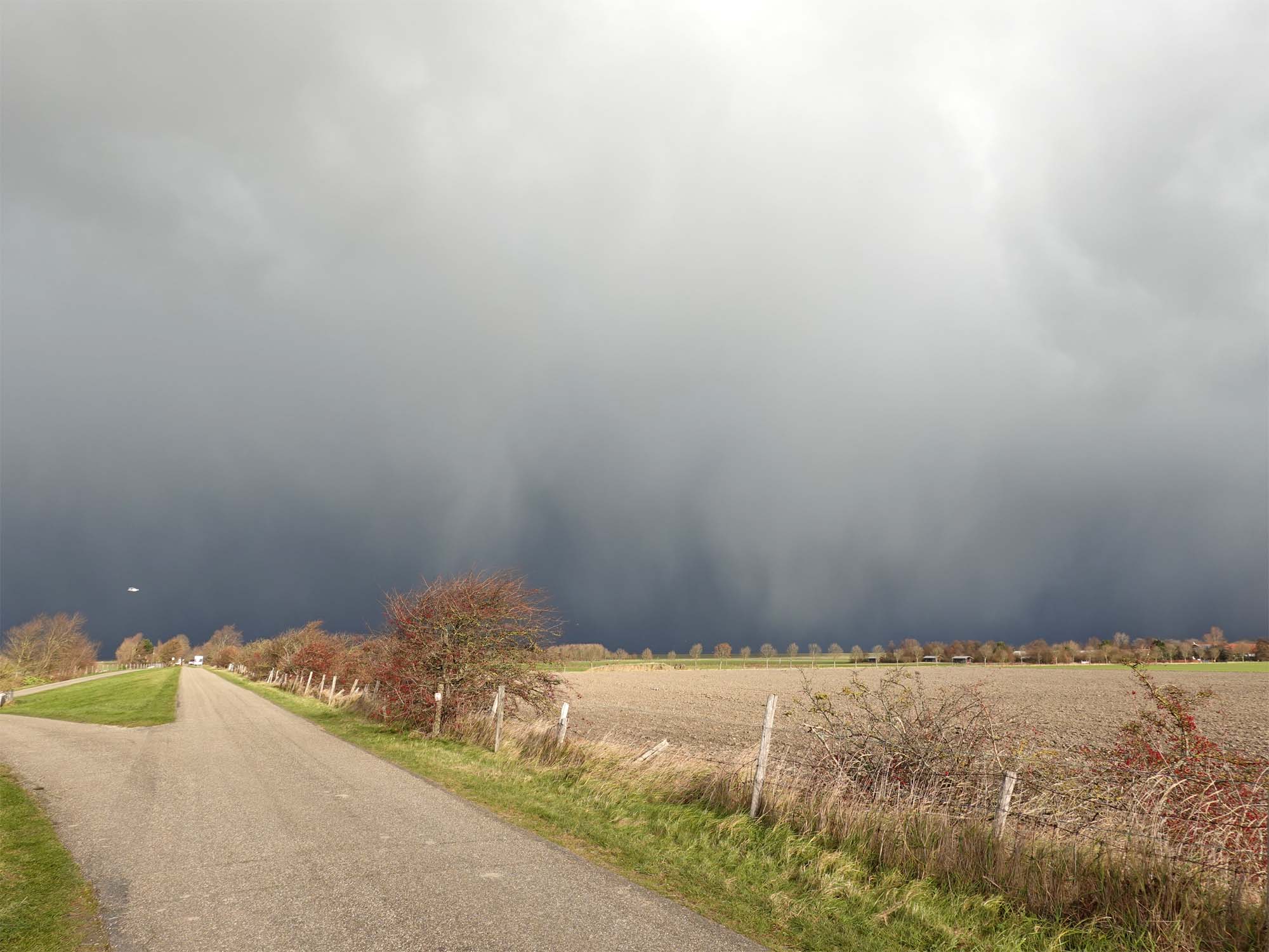 Dat was een pittig luchtje vanmiddag, mooi om te zien, maar ik maakte er toch maar een kort rondje van en bleef droog. Uiteindelijk zijn er in de middag maar een paar vlokjes gevallen.