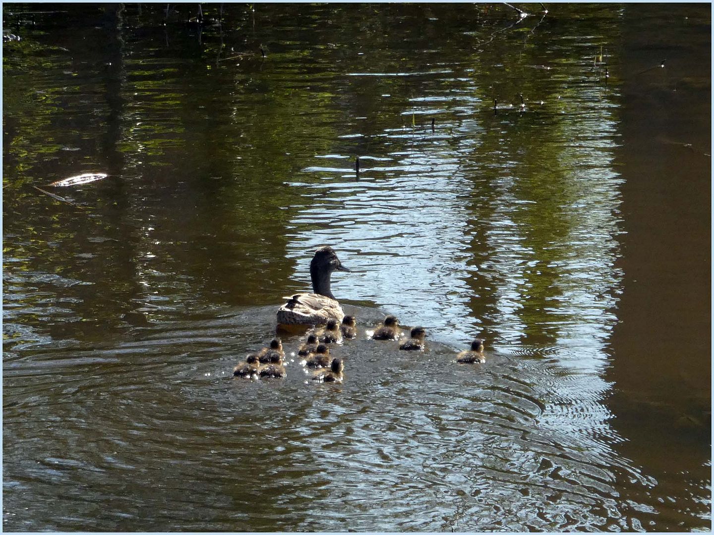 We doen nu maar een rondje meer en voor de rest ligt ze lekker in de schaduw. Vanmiddag wandelden we helemaal tot de camping, heen terug toch gauw een kilometer en we zagen poeletjes en een konijn waar ze toch nog achteraan ging.