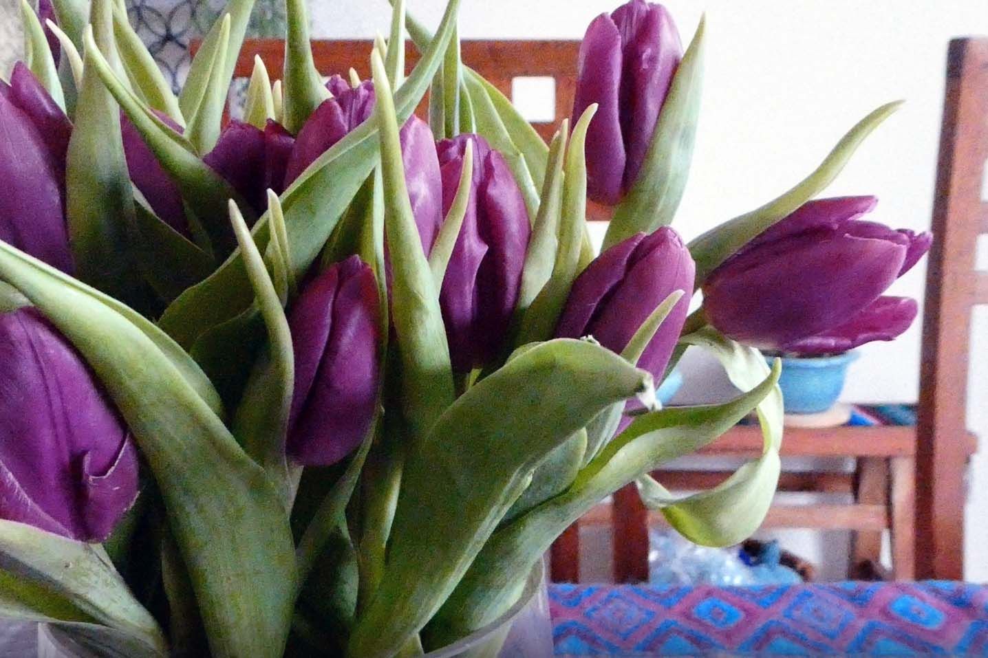 Een paar boodschappen gedaan op Scharendijke en maar eens wat tulpen gekocht, de eerste van dit jaar, mooie paarse. Lekker gewandeld de zon scheen en de wind was gaan liggen.