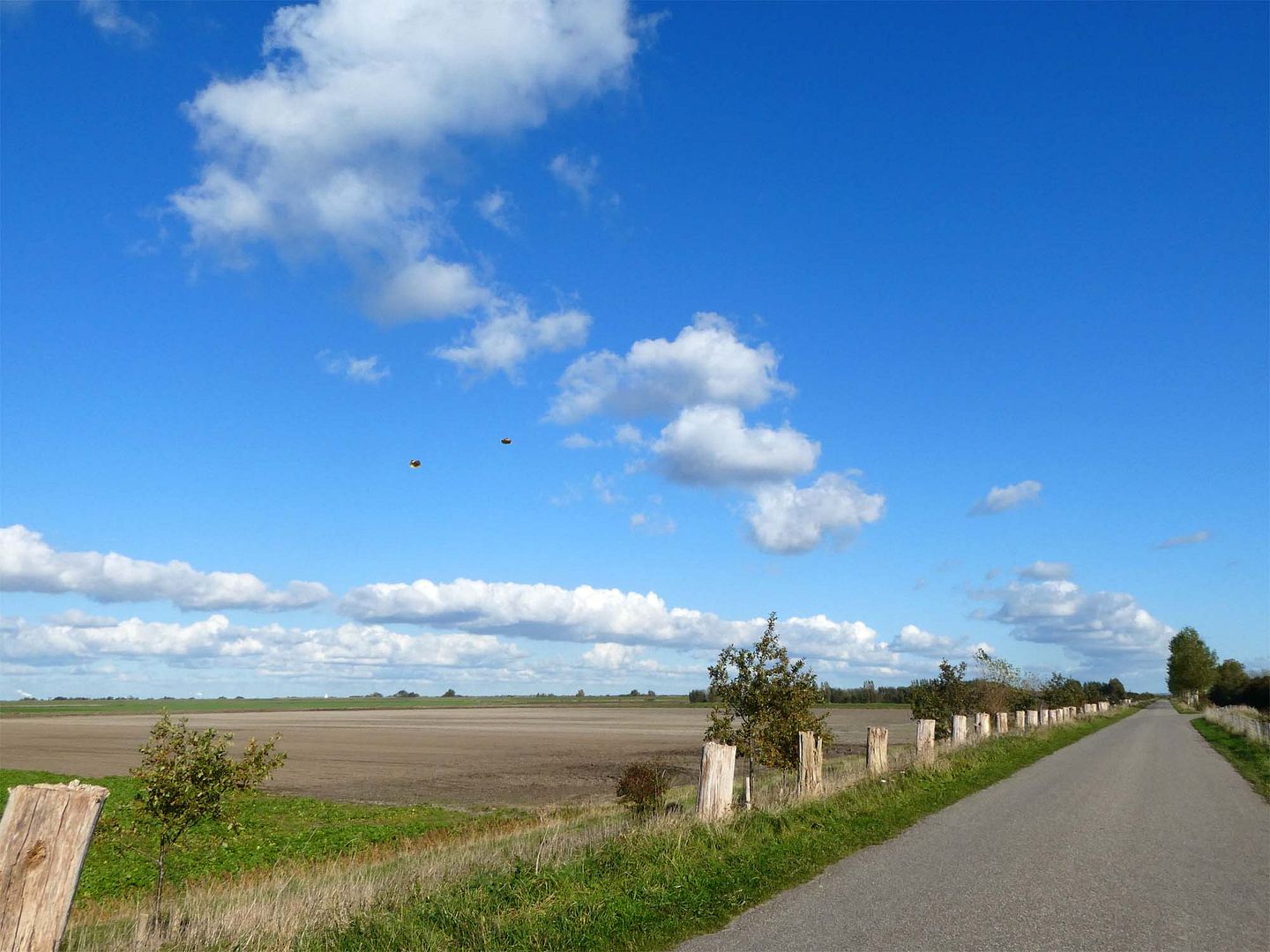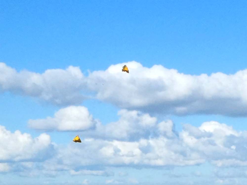 Na de koffie aan de slag met de bollen, alles zit in de grond, blaren geveegd, bed in de was, ik wist weer van geen ophouden. Vanmiddag een rondje Veerhoek, we kwamen vlinders tegen op de dijk. Knalgeel waren ze, prachtig!