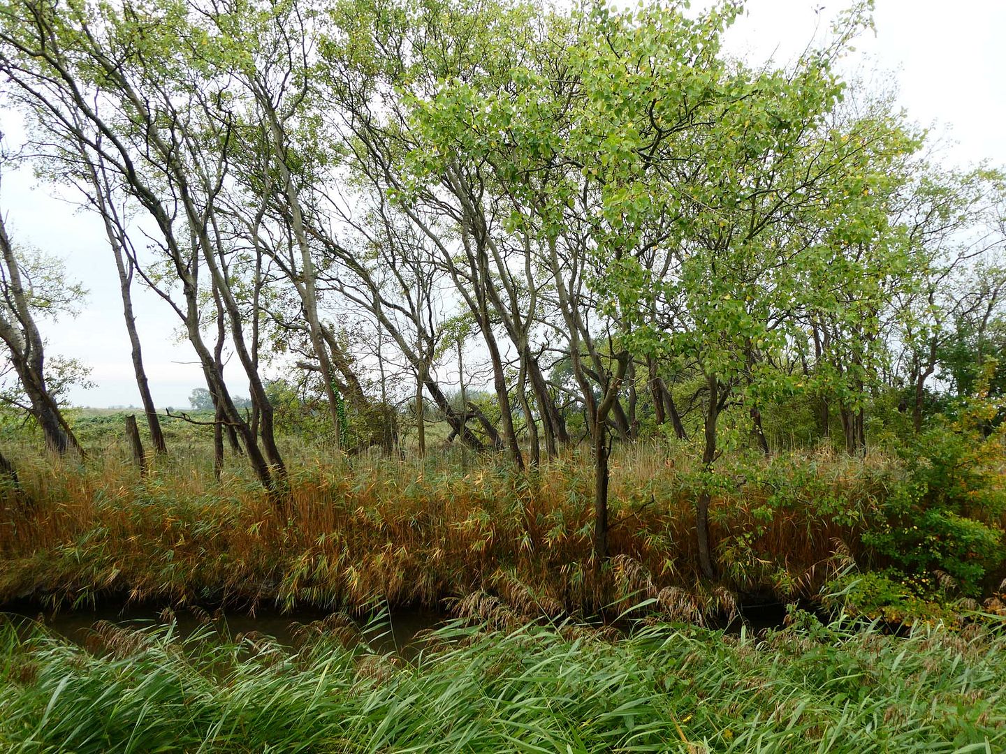 Herlijk gewandeld vanmiddag! Ik had alleen een regenjas aangedaan, het miezerde een beetje maar om daar nu een regenbroek voor aan te doen... en omdat het zo lekker was buiten, windstil, overal stil want geen jakkerende tractoren, liepen we er lekker op los en deden een groot (6km) rondje. Ik vergat mijn capuchon op te zetten, mijn benen en hoofd waren nat, de rest bleef droog. Ik heb een heerlijke regenjas!