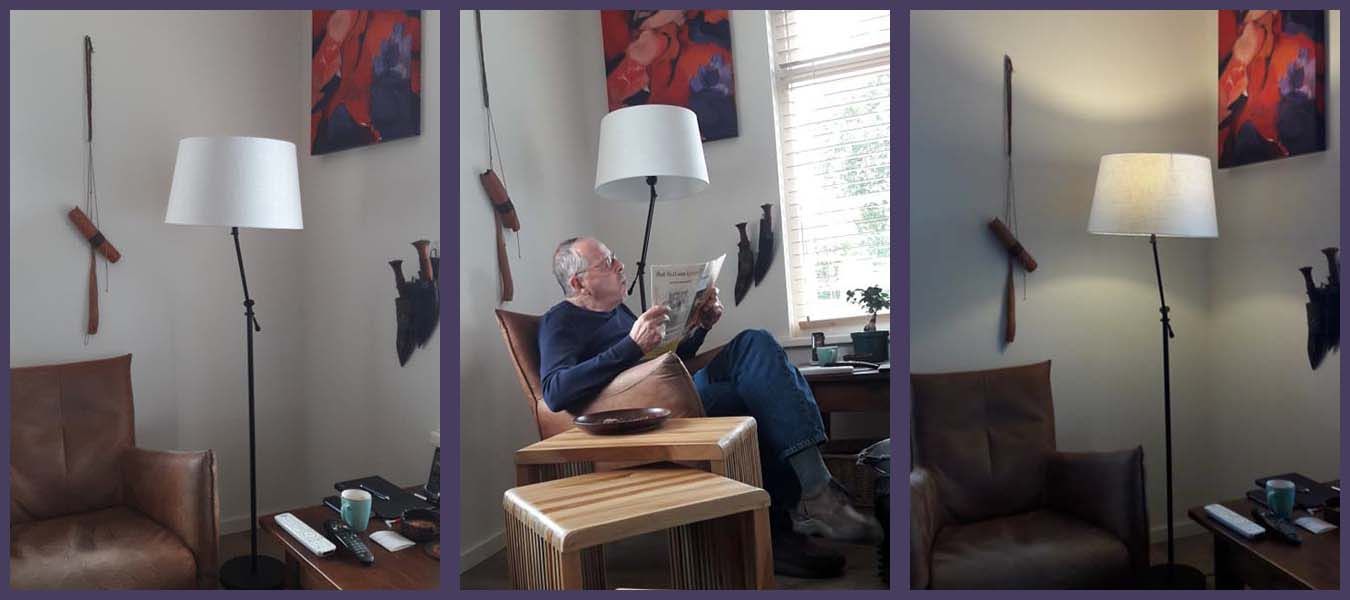 De lamp is ook helemaal goed! Ik zie nu Joop weer zitten als ik die kant op kijk, met die andere lampen was hij een donkere vlek, heel raar en vervelend ook.