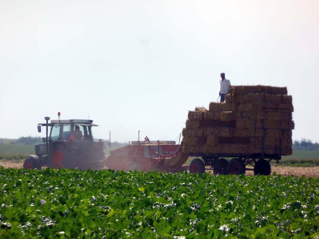 Dit gaat ook best snel, maar misschien mag het niet eens meer zo met die boer zo los bovenop de strobalen.