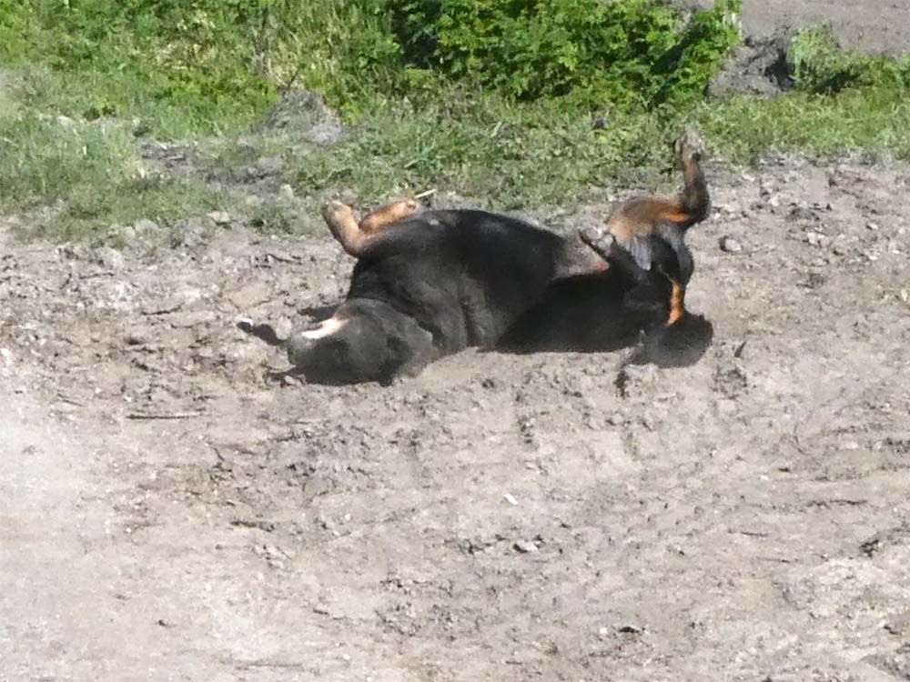 Didi nam vanmiddag sinds lang weer eens een heerlijk stofbad, dat kan nu weer de klei begint aardig te drogen.