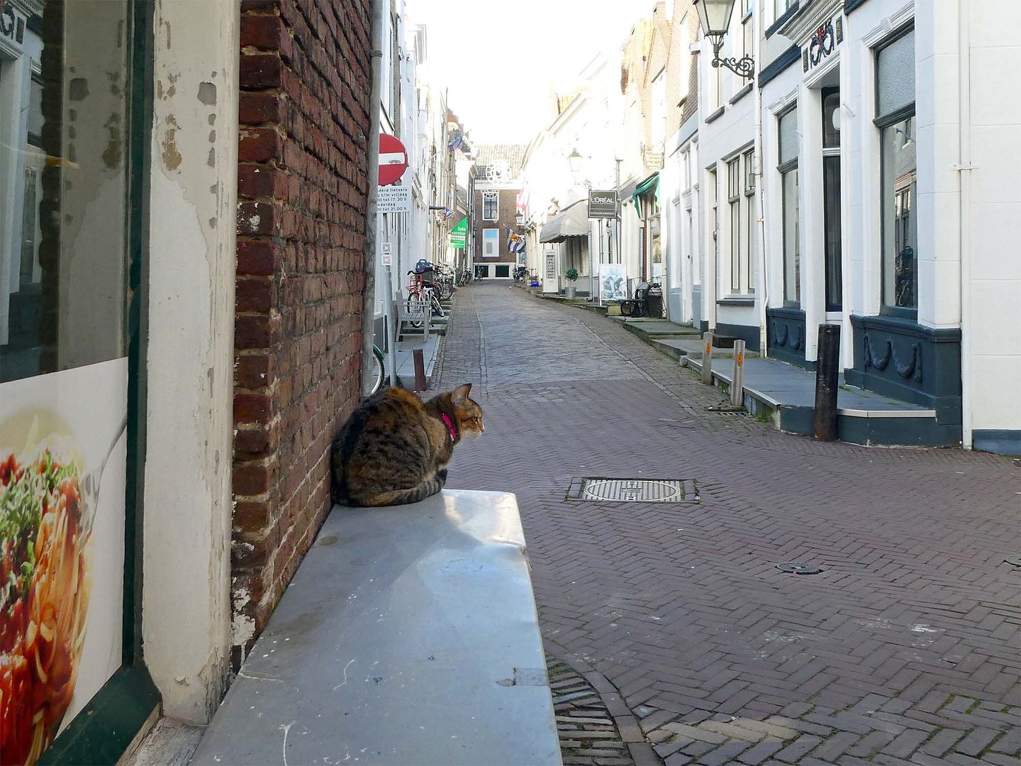 Daarna nog even naar de Lidl. Ik heb een hekel aan parkeermeters, zeker als ik niet weet hoe lang het gaat duren dus ik had de auto buiten de stad geparkeerd. Tijd om John te laten zien dat Zierikzee ook mooie straatjes heeft, maar toen zat er ineens weer een poes in beeld.
