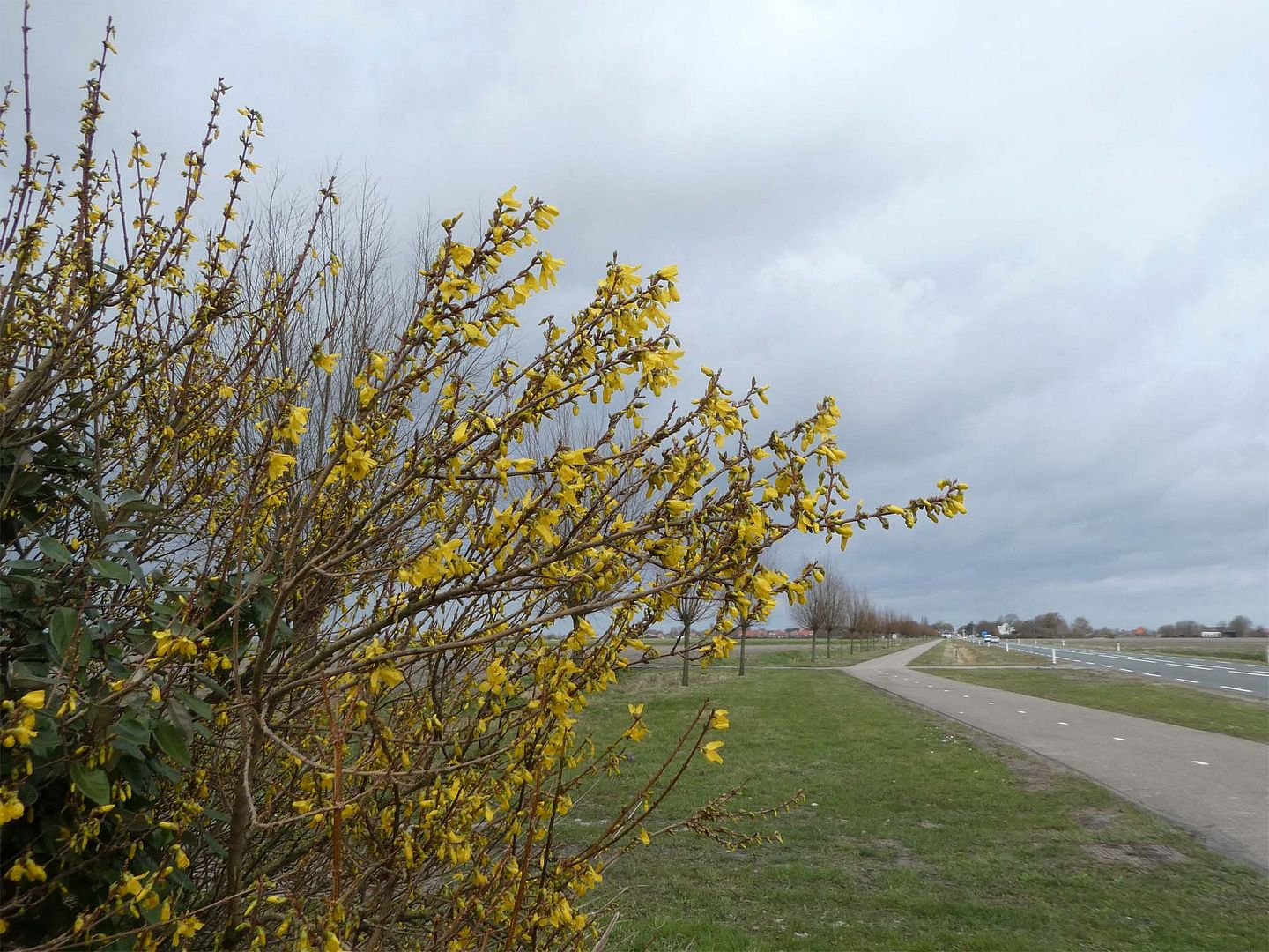 Vanmiddag een rondje Scharphage, Didi had er zin in en ook al hingen er wel buien we kwamen zo goed als droog thuis. Onderweg ook al bloeiende forsythia, ik word wel weer blij van al dat bloeiende spul.