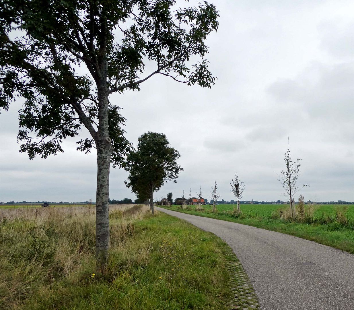 Er is heel veel gekapt de laatste jaren en ik heb daar ook veel op gemopperd als ze weer eens bezig waren, maar vanmiddag viel me toch ook de nieuwe aanplant op. Het is ook zo dat je dat eerst bijna niet ziet natuurlijk, die kleine staakjes. Kijk in de verte nieuwe bomenrijen.