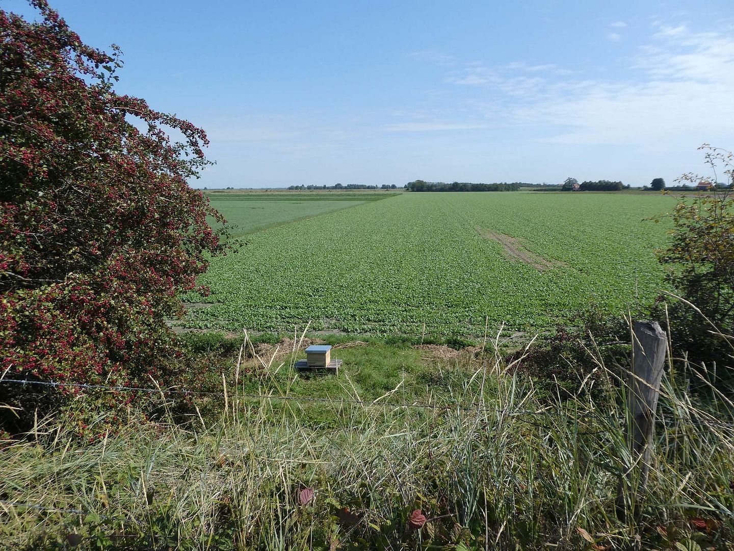 Vanmiddag fotografeerde ik nog de nieuwe bijenkast die nu ergens in de polder staat, inmiddels ben ik weer een keer geprikt, in mijn teen dit keer. Ik heb gelijk een pilletje ingenomen die ik nog had van de vorige keer en zalf erop gesmeerd.
