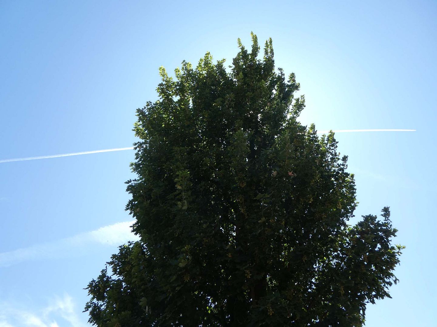 Zo rond een uur of één tot een uur of drie verdwijnt het zonnetje erachter, iets eerder of later kan het zijn, maar op het moment dat de zon eigenlijk het felst is heb ik een fantastich natuurlijk schaduwplekje en daarvoor en daarna ook nog wel alleen steeds iets minder, terwijl er op andere plaatsen ook best nog zon te vinden is.