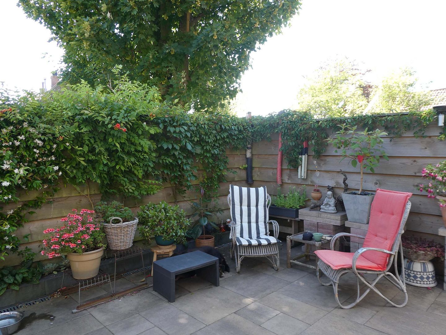 Vandaag de tuin weer wat opgeruimd, zo'n klein tuintje heeft ook zijn onderhoud nodig en al is het dan misschien niet nodig, dan vind ik het toch lekker om een beetje te rommelen. Dooie blaadjes weg en zo, beetje vegen, wat verzetten.