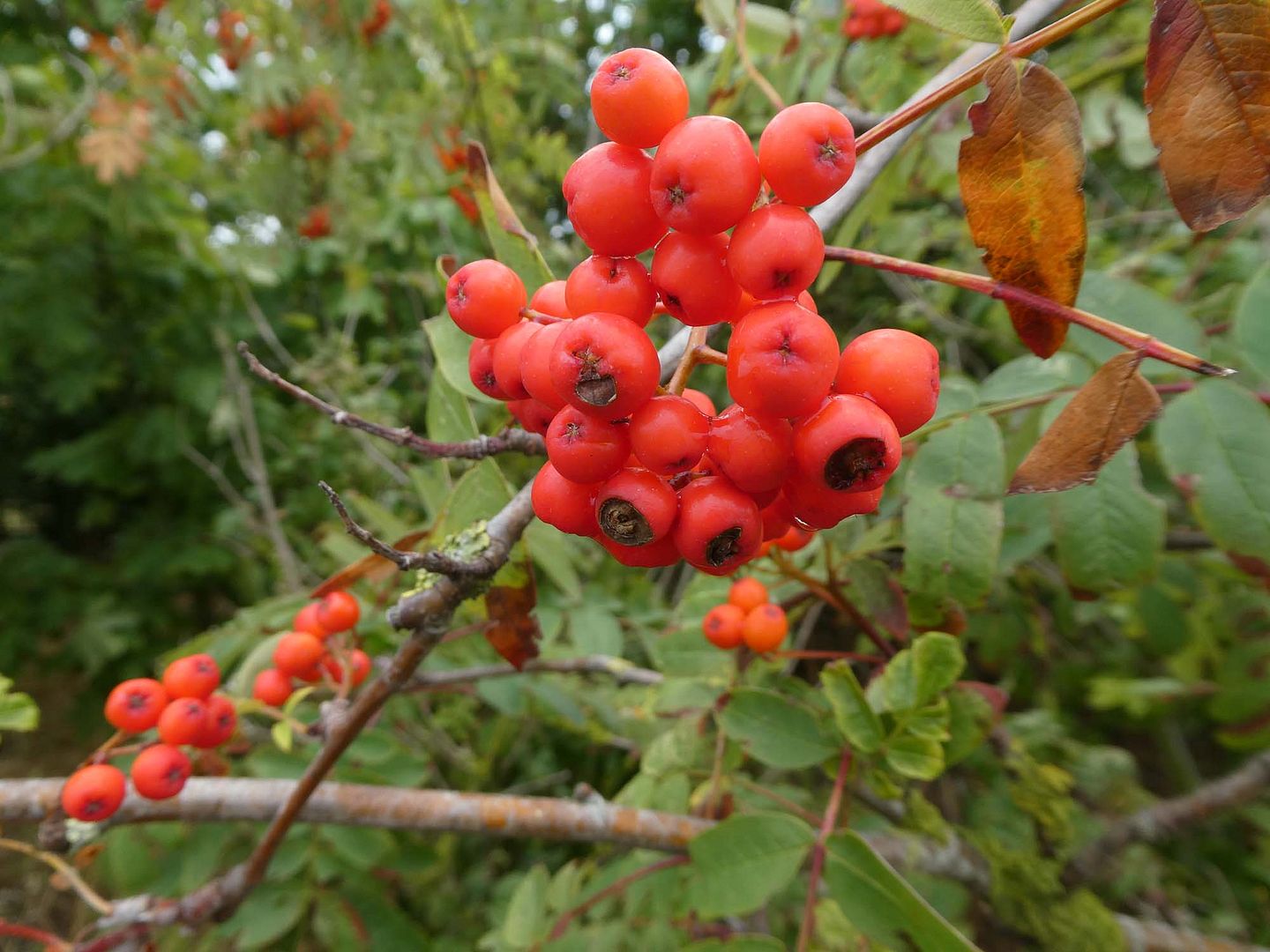 De eerste besjes zijn er ook weer, en wel hele mooie vind ik altijd, de lijsterbesbessen. Ze zijn er maar even want de vogels zijn er dol op.