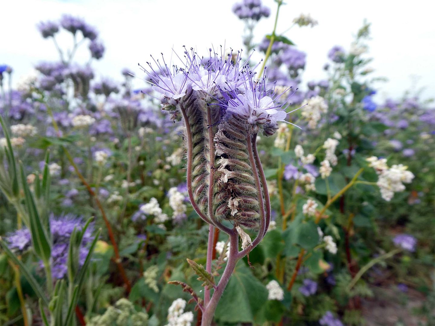 Op de terugweg kwam ik langs een hele rand ingezaaide phacelia's oftewel bijenbloemen met hier en daar ook wat korenbloemen, prachtige kleuren! Ik ging er even voor zitten.