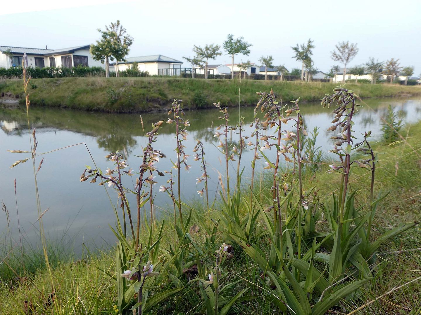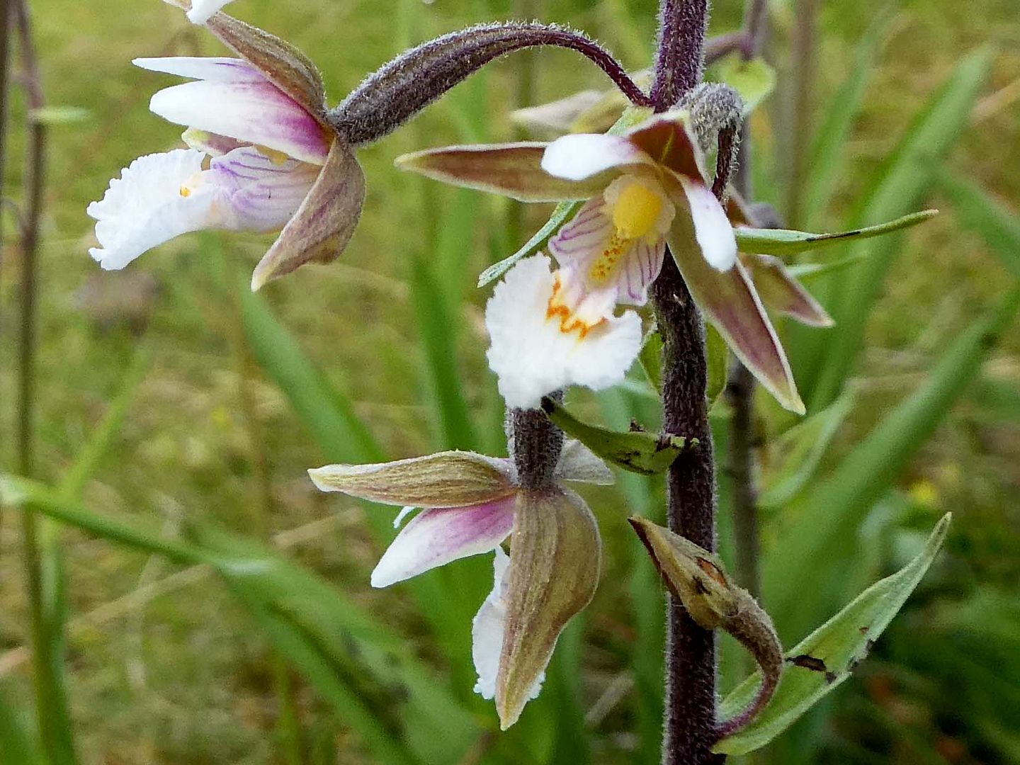 Dit is de moeraswespenorchis. Kleine bescheiden bloemetjes, totdat je beter gaat kijken.