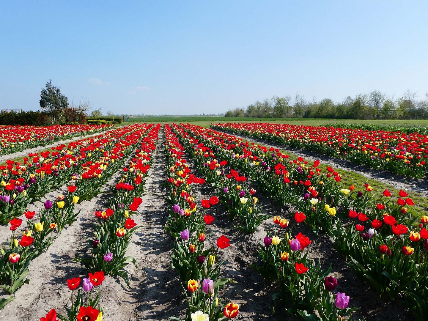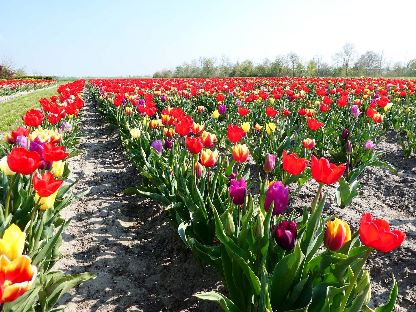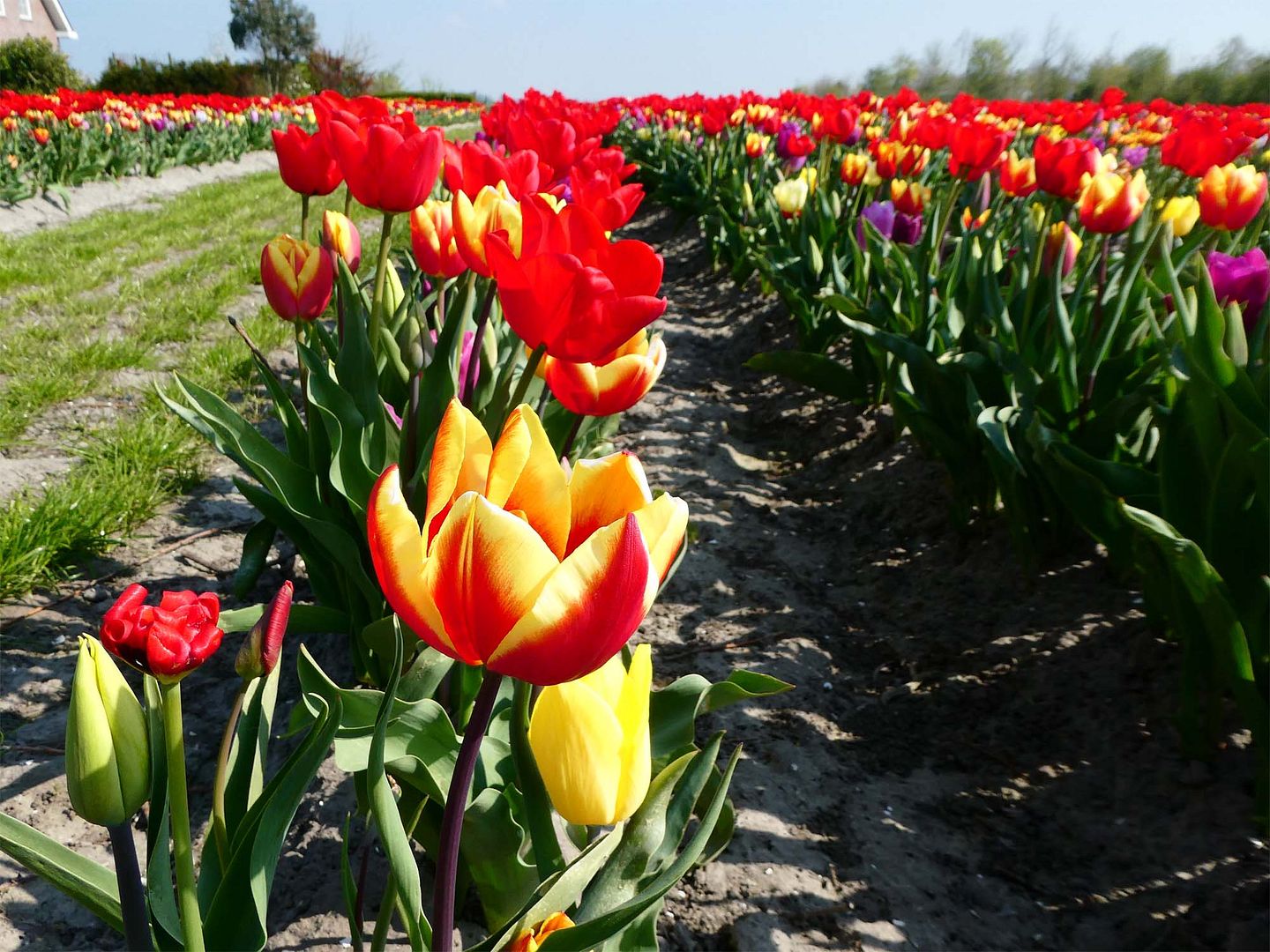Een mooi veld gemengde tulpen bij Noordgouwe, je kunt er dertig knippen voor vijf euro, nog knoppen zat!