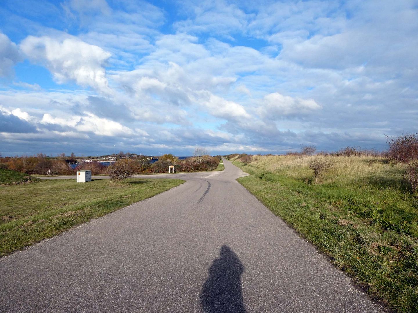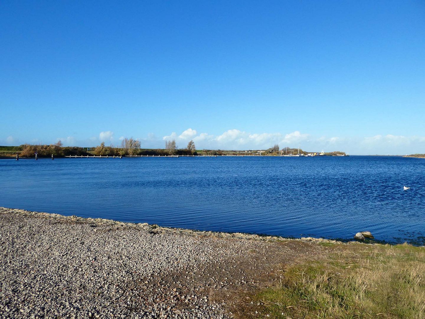 Het haventje van Bommenede was leeg en winters blauw al was het vast nog wel een graad of twaalf.