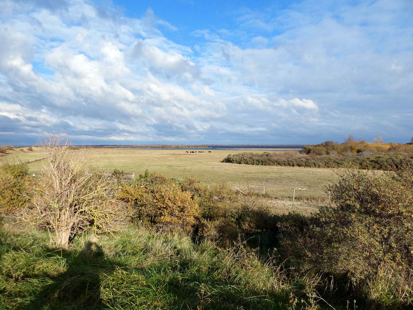Ik was speciaal even de dijk overgestoken om een paar foto's te maken en toen we bijna weer op de weg waren rende Didi er ineens vandoor, ik vond het raar had geen haas of konijn gezien en toch deed ze net alsof dat wel zo was, maar eenmaal bovenop de dijk werd het me wel duidelijk, daar stond HeleenHaas tegen Bram te praten en dat had ze gehoord natuurlijk. Zo vonden we elkaar toch nog en liepen gezellig samen verder voor een kopje thee.
