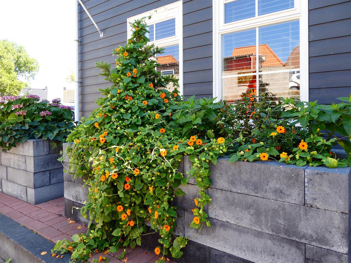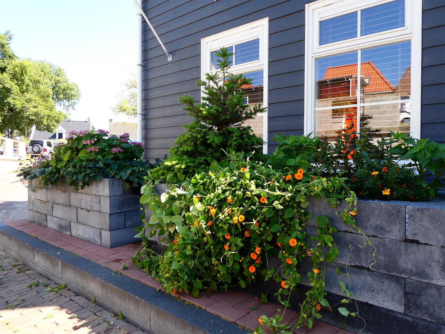 Wat wel heel leuk was, was dat er gisteravond ineens een buurvrouw begon te zingen. Wij dachten eerst dat er een bandje speelde bij d' Ouwe Smisse, maar nee hoor, gewoon vanuit haar tuin, mèt microfoon en zonder bijbehorend feest. Erg apart en ook erg leuk, want het klonk goed!