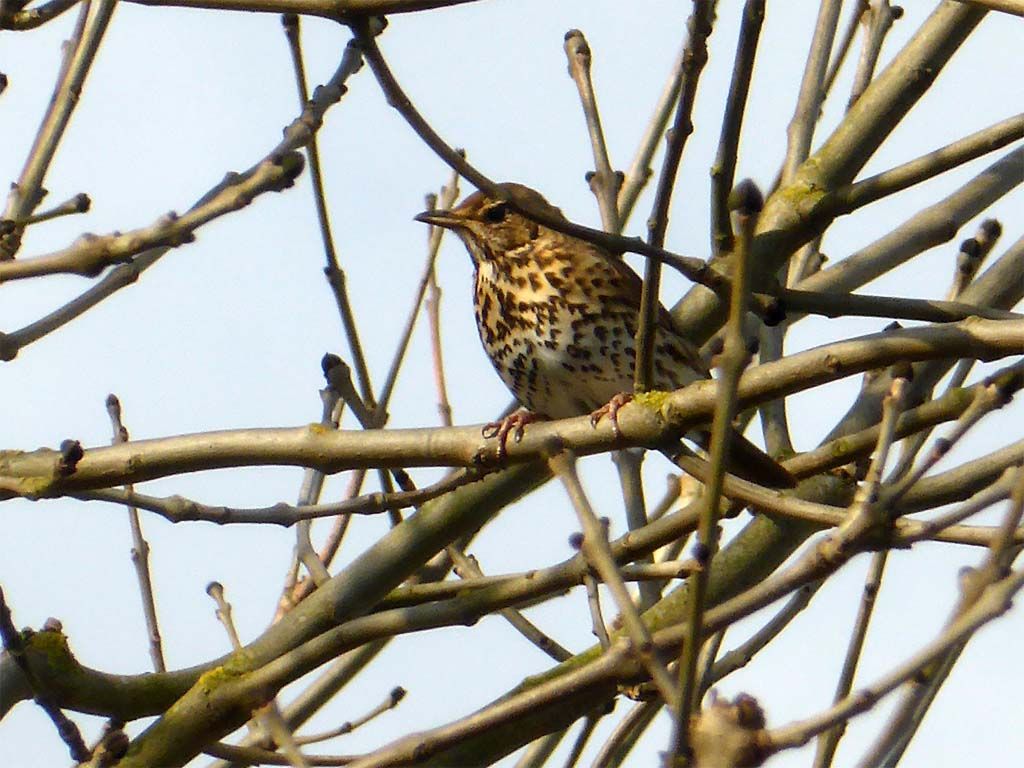 Ondertussen doet de Scharendijkse lijster flink zijn best overal bovenuit te komen, vooral 's morgens en 's avonds. Het lukte me niet hem met een geopende snavel op de foto te krijgen, morgen nog eens een poging wagen.