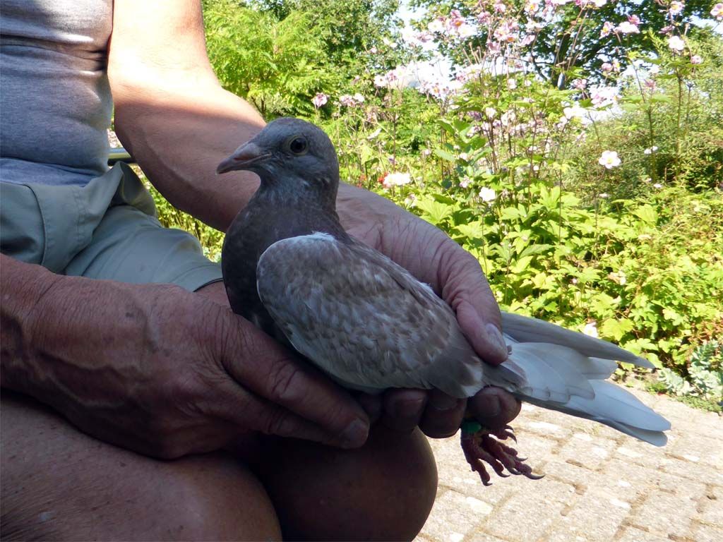 Joop was een hele dag onderweg om een paar duiven op te halen, deze vind ik wel heel apart, hij is bruin en nu ben ik vergeten hoe dat heet, straks even vragen. (update: het is een vale duif)