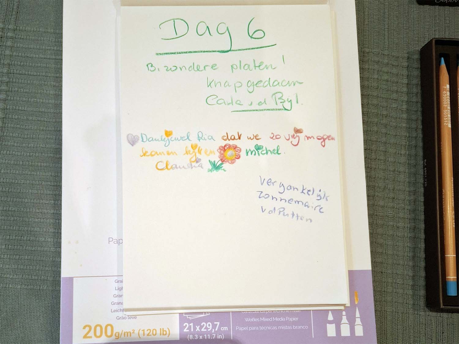 Het kwam er op neer dat degenen die nog wel iets zagen er een stukje of twee maakte, zodat er toch iets mee naar huis ging. Mijn hobby is het ook niet, maar mijn buurman was tevreden.Toen kwam er nog iemand iets zingen en daarna konden we huiswaarts.