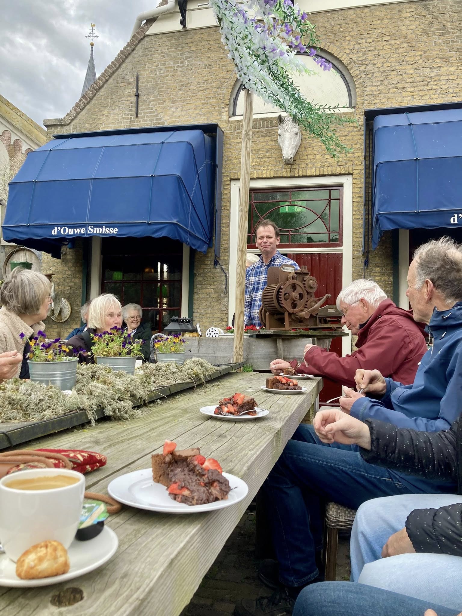 Vandaag was een heerlijke dag om veel buiten te zijn, in de zon die nog niet al te warm is. Fietsen, wandelen en wat met plantjes. Joop fietste wel 40km, dat gaat gewoon weer en vanavond schoven we weer aan net als anders. Het was heel druk, een volle Smisse, voller kan niet en wat een gekakel!